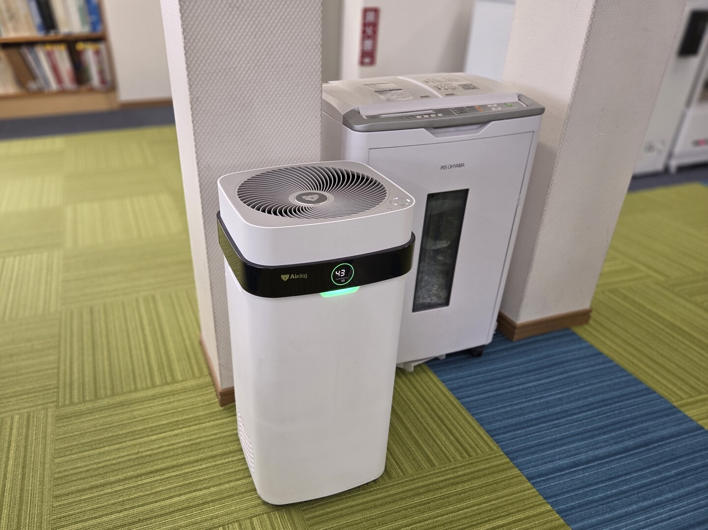 各フロアにアルコールスプレーを準備し、事務所や応接室にはエアドックを設置しています。