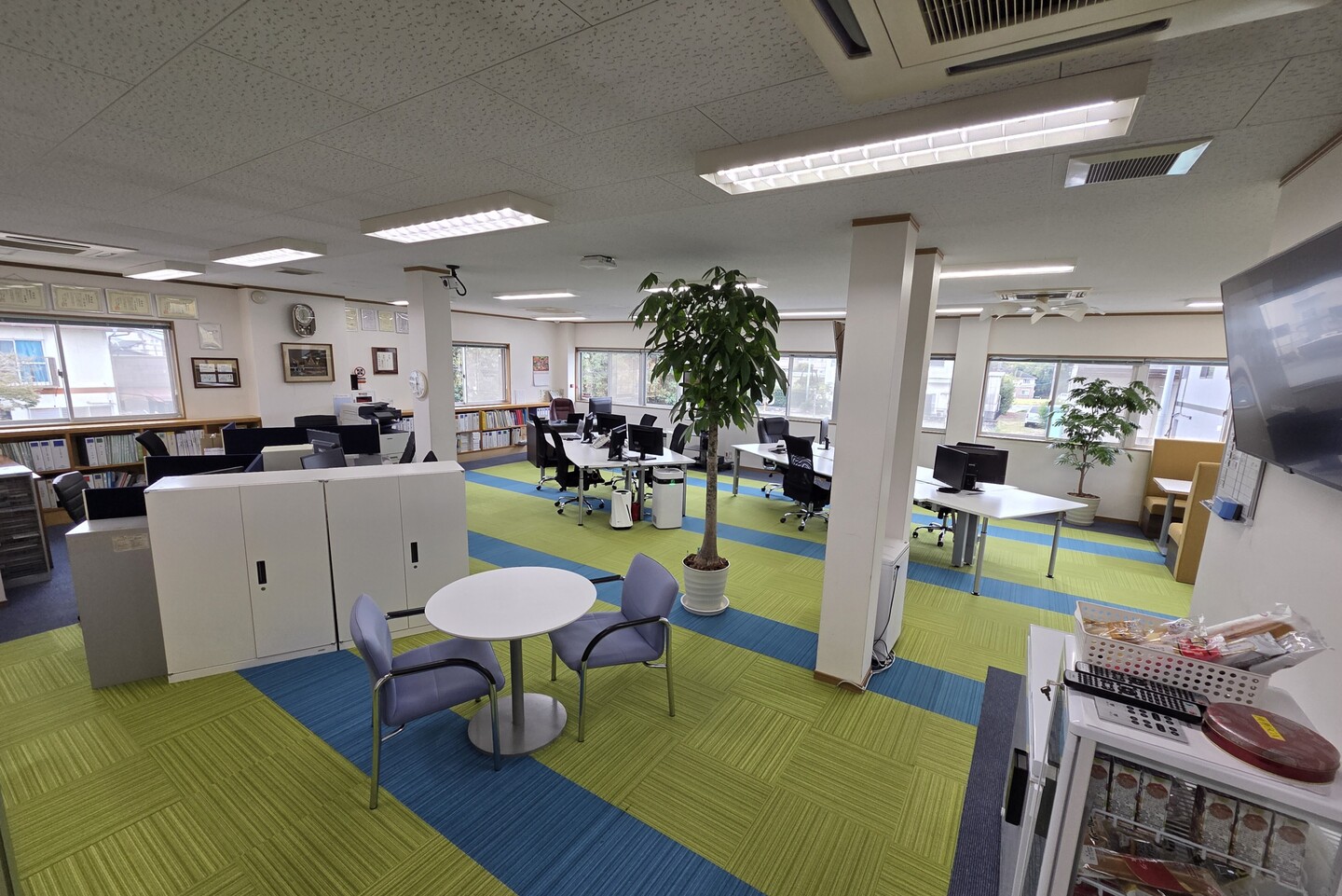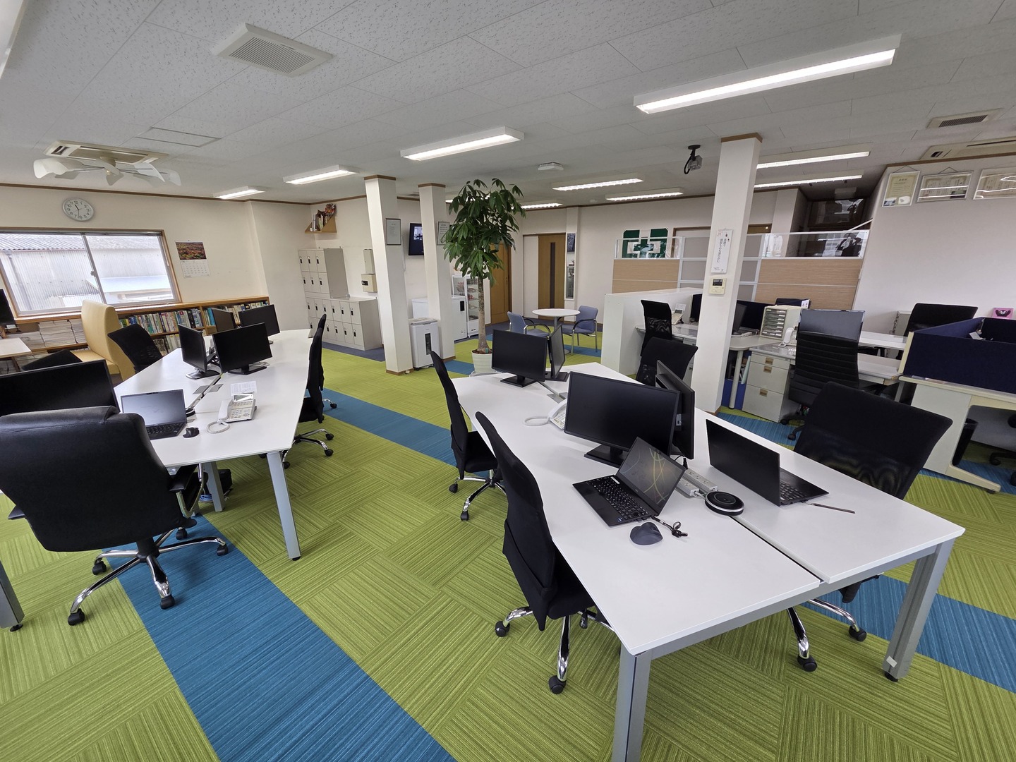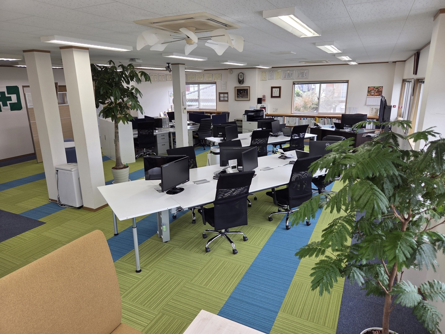 観葉植物もあり、カーペットも明るいため、社員の雰囲気も良くなります。