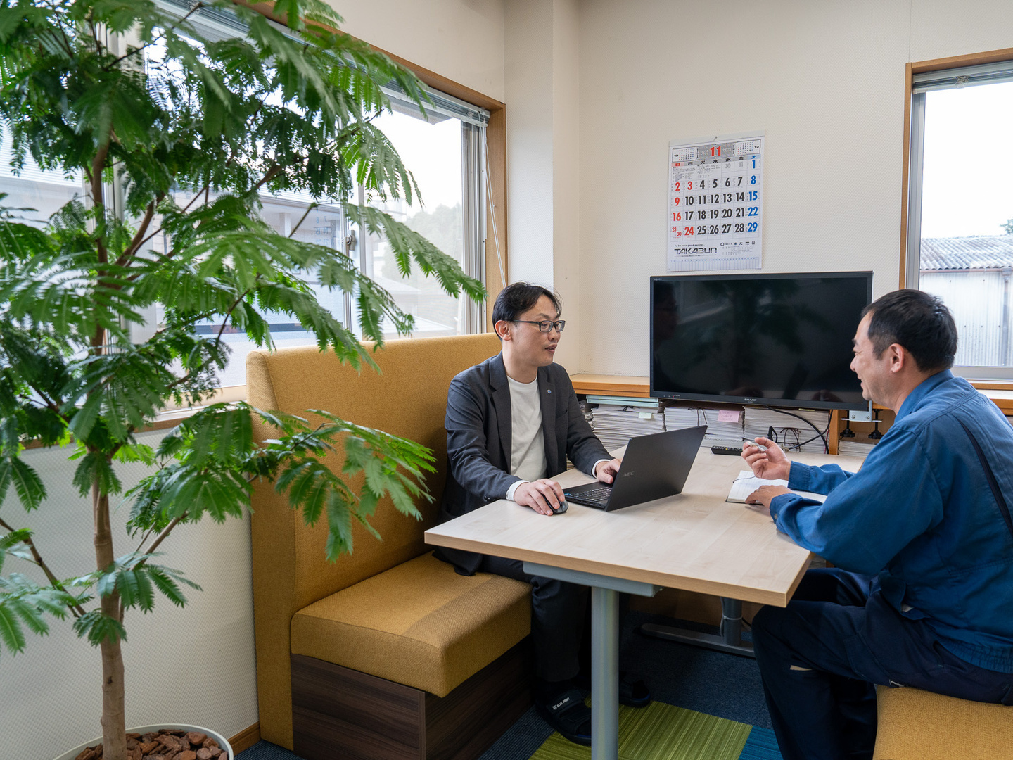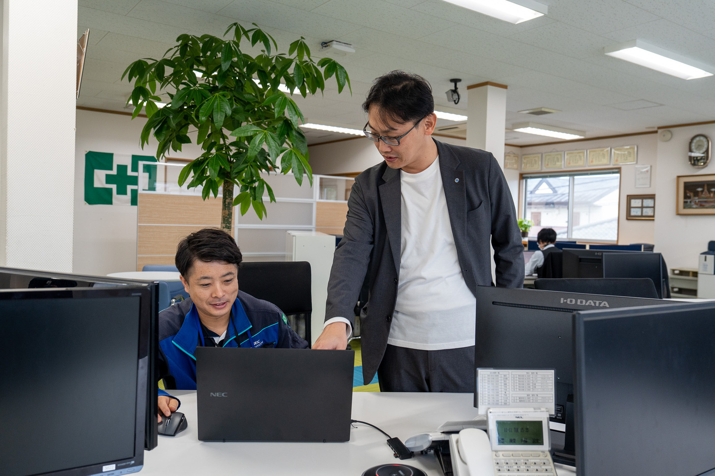 福岡営業所と常時オンライン接続しており、すぐに情報共有ができるようになっています。