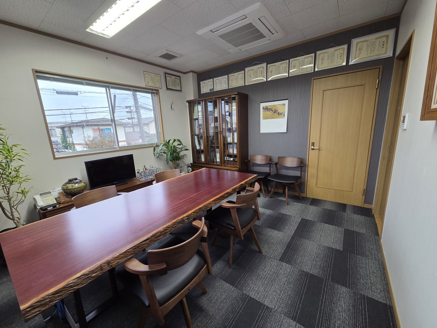 来客者をお招きするにも最適で、落ち着いた空間、一枚板の独特な色合いの机も評判です。